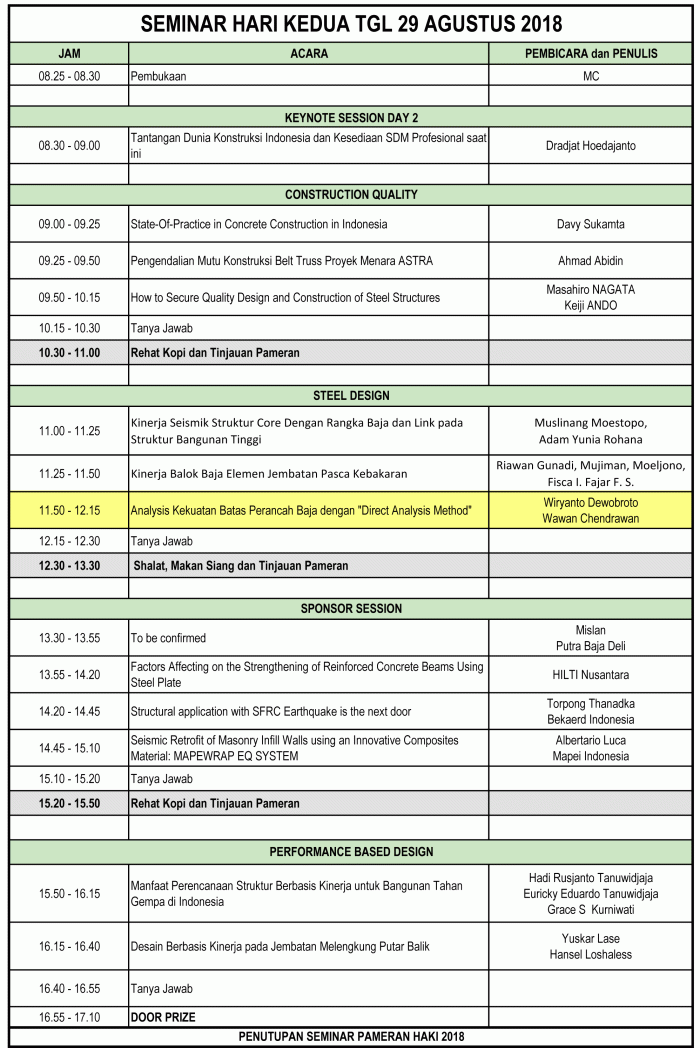 Monggo, ini jadwal seminar HAKI 2018, Selasa dan Rabu, tanggal 28-29 Agustus 2018 :