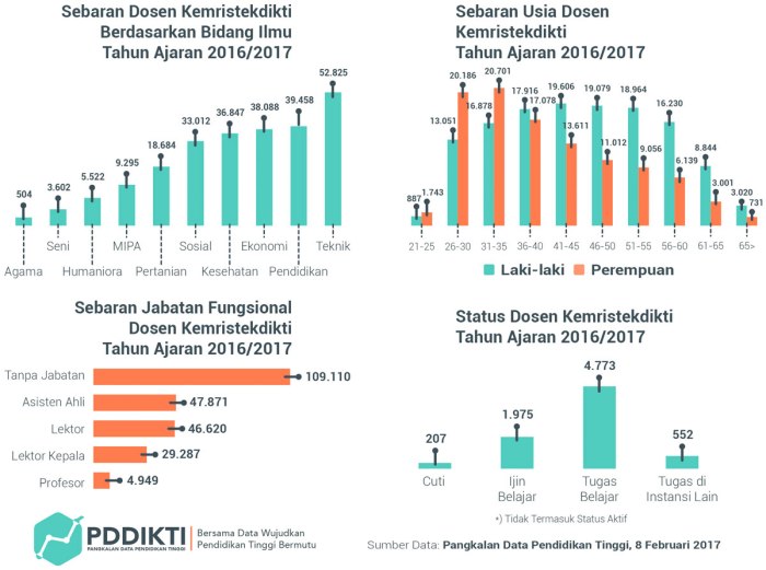 Komposisi jumlah orang yang berkarir sebagai dosen di seluruh Indonesia dapat dlihat dari data PDDikti sebagai berikut.