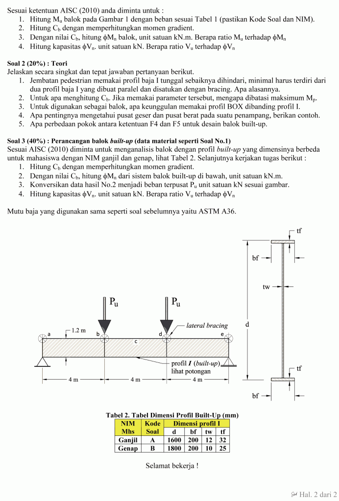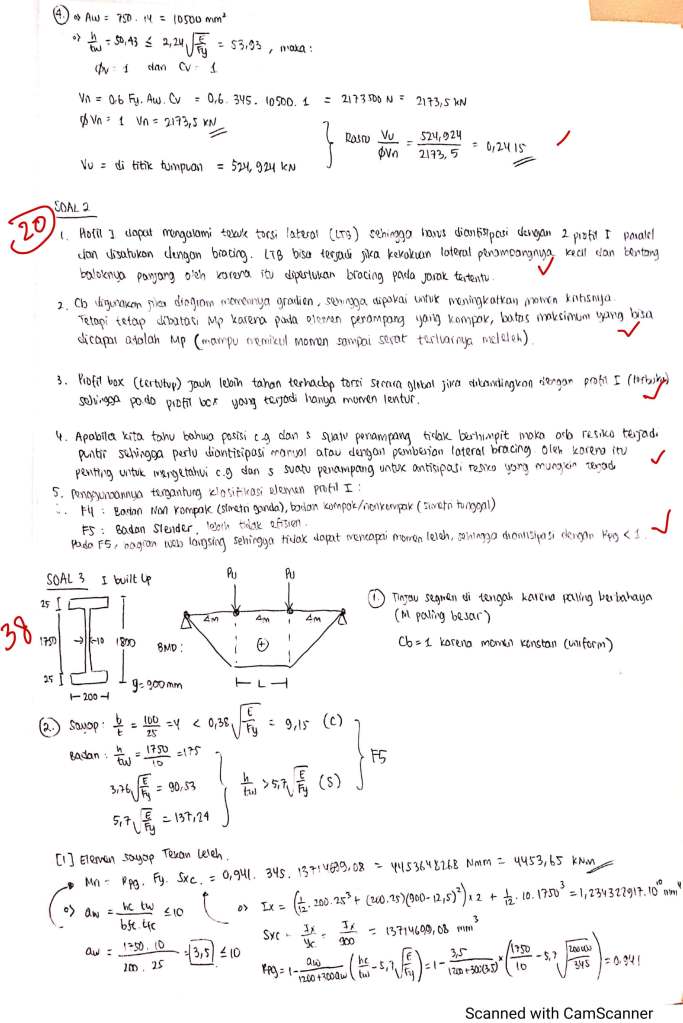 Soalnya nggak terlalu kreatif ya. Tetapi menurutku untuk soal struktur baja di level S1 maka seorang mahasiswa yang bisa menjawab dengan baik, dan bisa mengerjakan berdasarkan contoh-contoh yang dipelajari, pada dasarnya sudah cukup.
