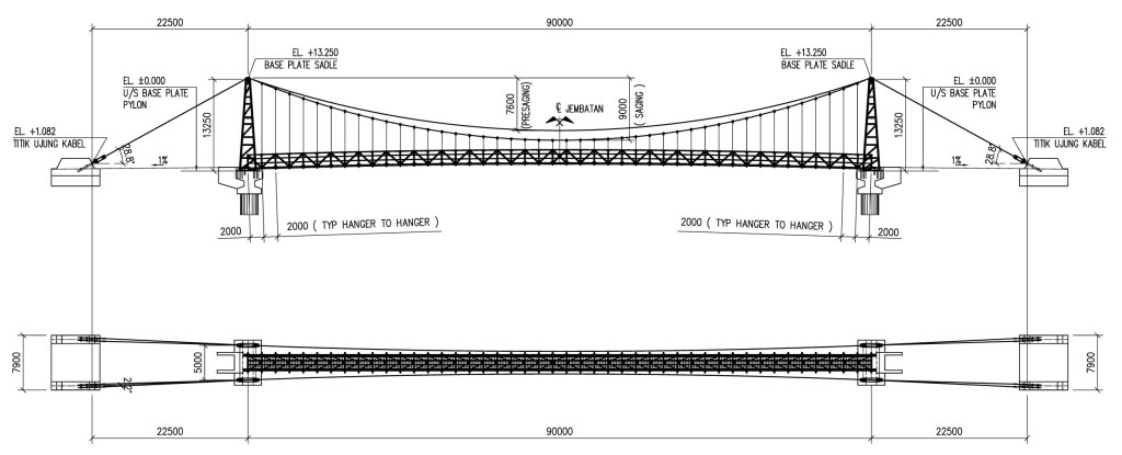 Gambar 5. Jembatan gantung asimetris PUPR tipe deck-fleksibel